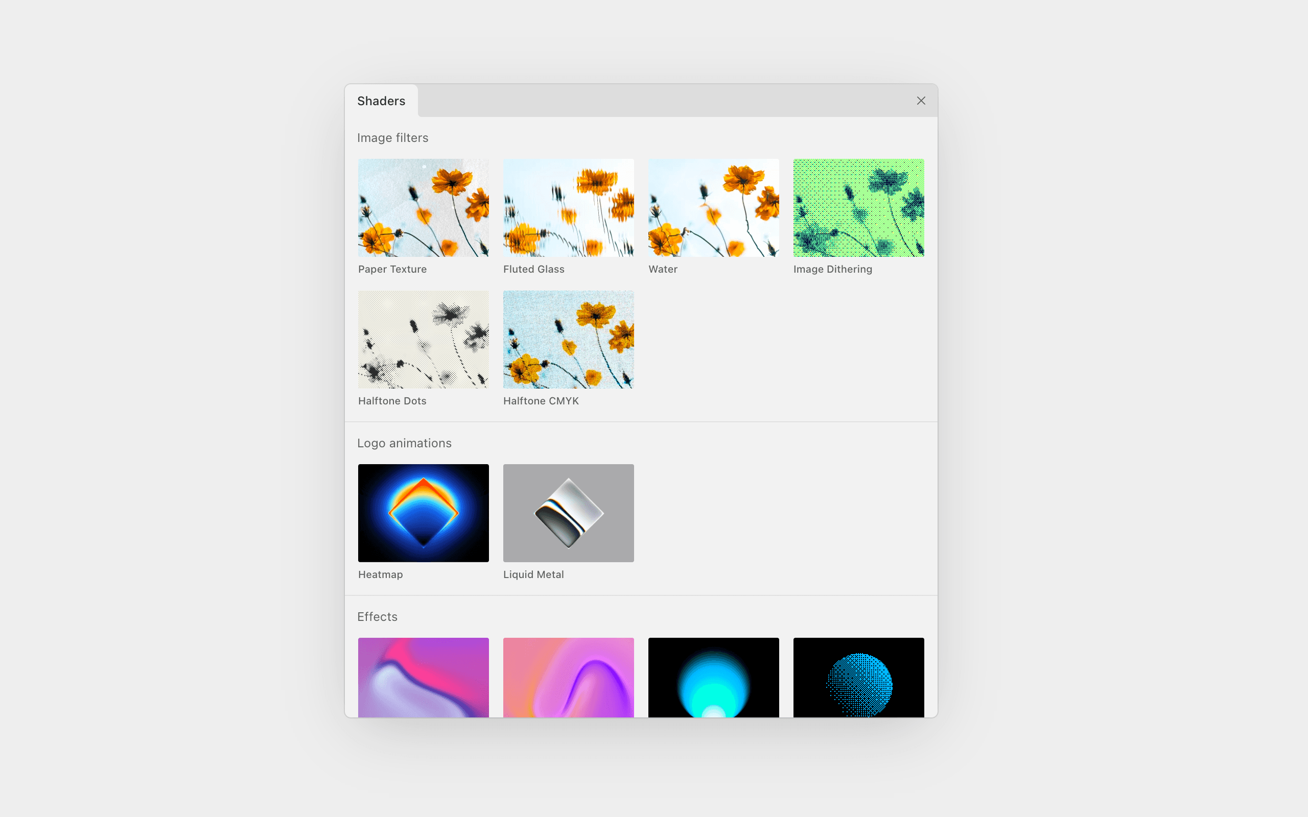 A new design tool on the block: Paper. It’s been on my radar, and recently I gave it a try for designing UIs. What caught my attention were the shaders. They’re basically filters, effects that you can apply to an image or generate based on provided parameters.